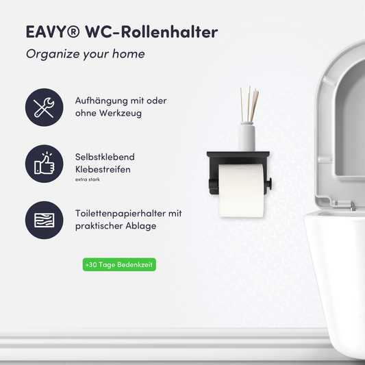 WC-Rollenhalter mit Ablage - Selbstklebend oder Bohren - Schwarz
